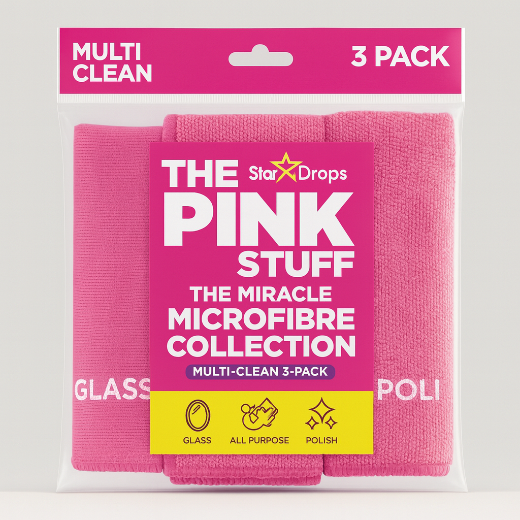 The Pink Stuff Chiffon de nettoyage microfibre rose (3 pièces)